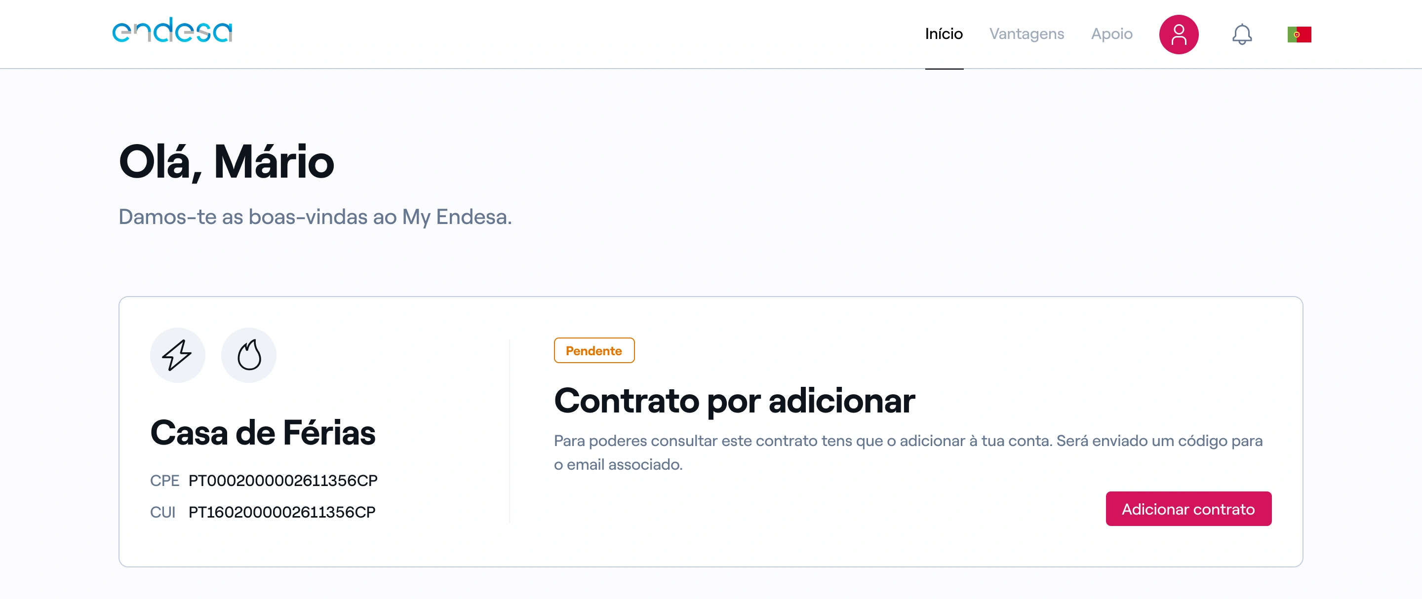 Para adicionar um contrato à sua conta e poder gerir e ver os seus detalhes deve: