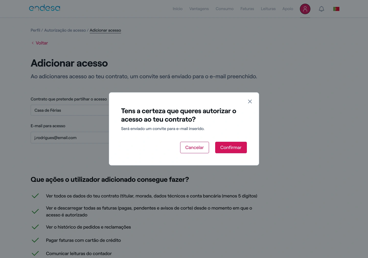 6. Confirme que quer autorizar o acesso ao seu contrato;
