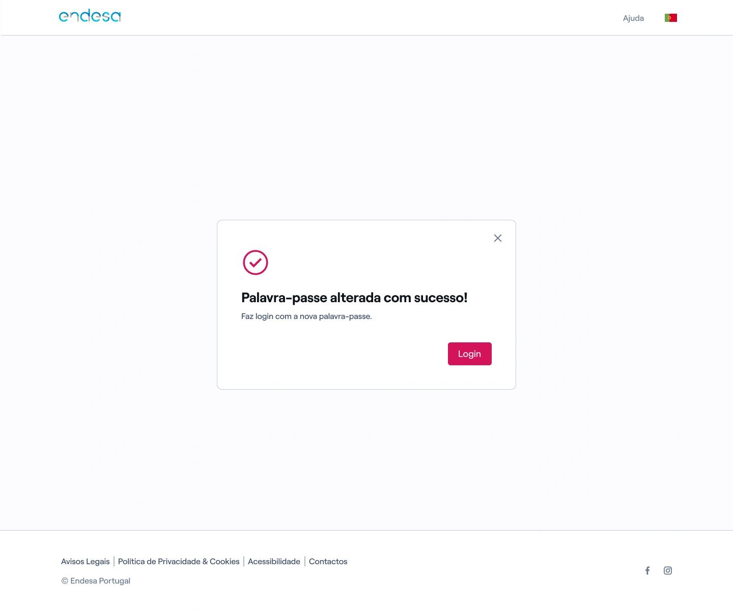 5. A sua palavra-passe foi alterada com sucesso. Clique no botão “Login” para voltar a iniciar sessão com as novas credenciais.