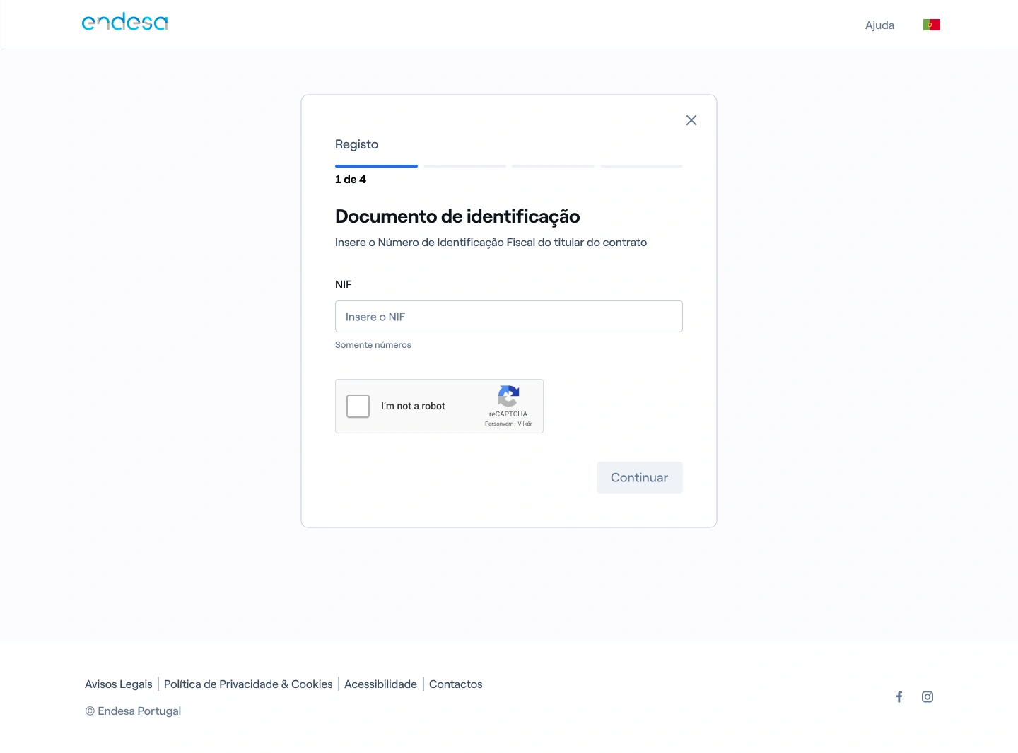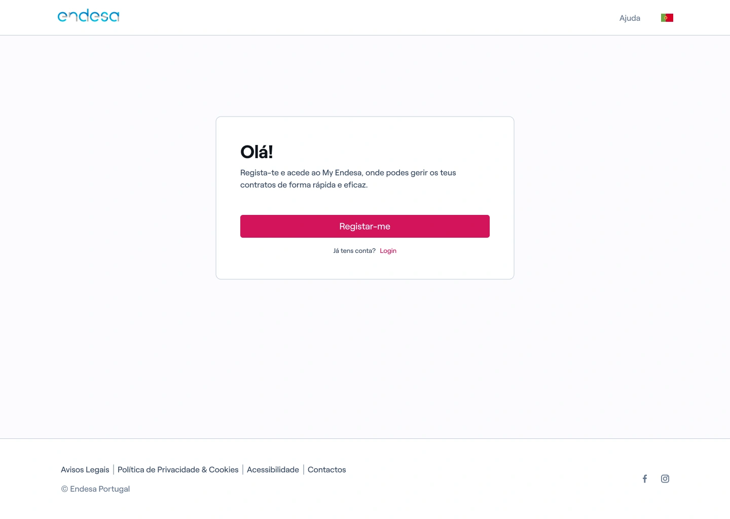 Se é cliente Endesa, pode registar-se no My Endesa. Para isso basta aceder à página de login da área de cliente, selecionar a opção “Registar-me” e preencher os dados solicitados para o registo.