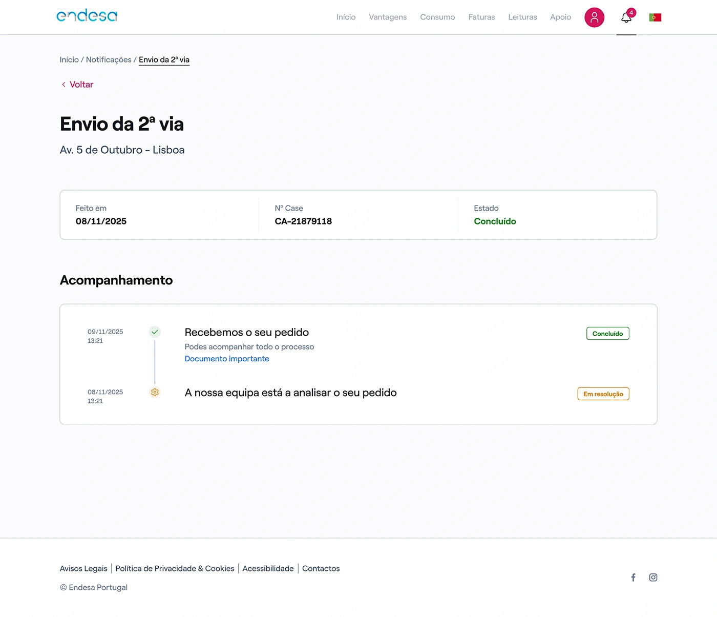 Pode acompanhar tudo diretamente na secção "Pedidos" da sua área de Cliente My Endesa, onde verá o histórico e o estado das suas solicitações.