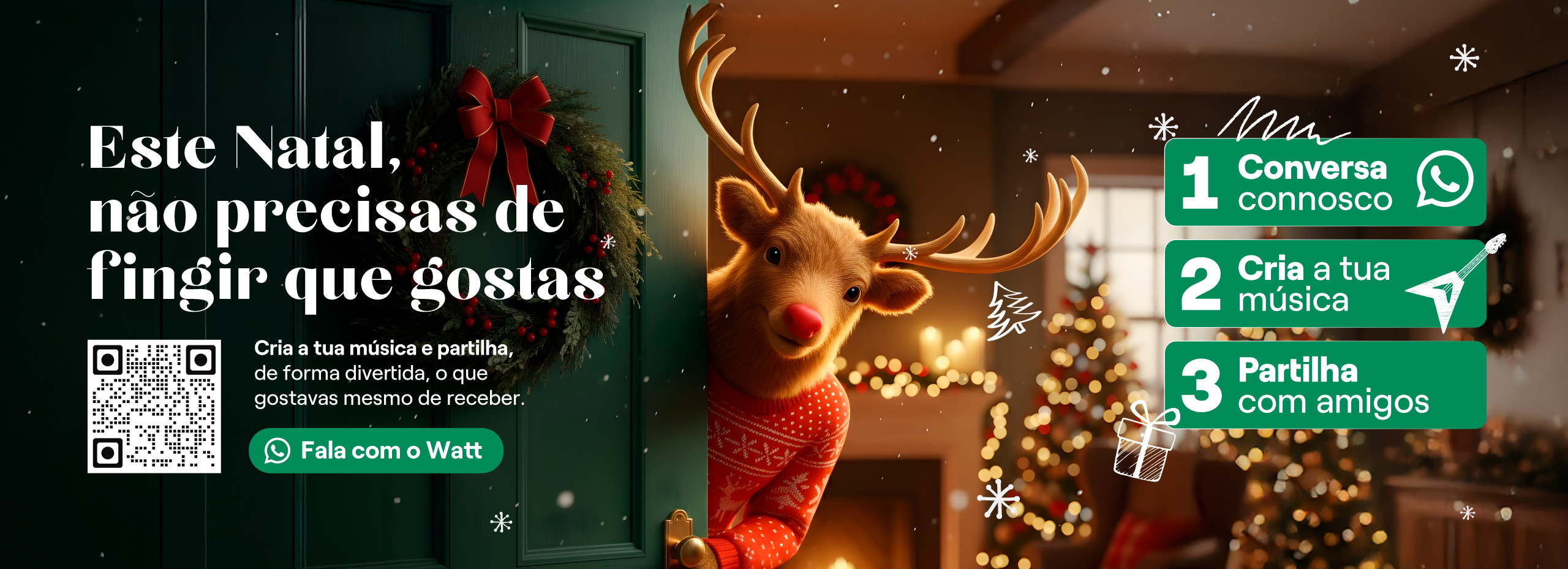 Eu sou o Watt e tenho uma missão: tornar o teu Natal mais autêntico e divertido. Chega de presentes que não fazem sentido - este ano, diz o que realmente queres, sem parecer mal! Nós ajudamos.